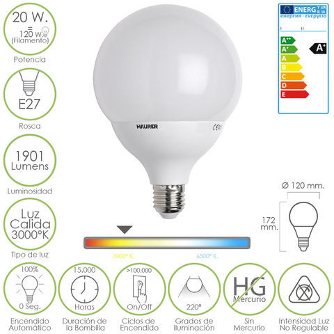 - Potencia: 20 W. equivalente a 120 W.