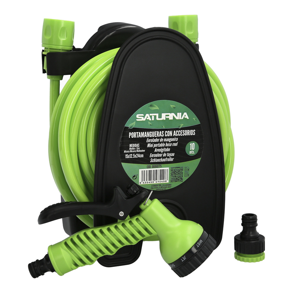 | Porta mangueras Pared 10 Metros Con Pistola - Medidas: 15x12,5x24 cm. - Fabricada con materiales de alta calidad que garantizan un rendimiento excepcional, proporcionando una gran capacidad de estiramiento y resistiendo altas presiones sin fugas ni explosiones. El pulverizador cuenta con acabados robustos en ABS y la manguera está hecha de goma de polietileno, lo que la hace ligera, flexible, pero también fuerte y duradera. - La pistola incluye 7 configuraciones diferentes de chorro, permitiendo ajustar el flujo de agua según tus necesidades de riego o limpieza. - Mango de goma antideslizante asegura un uso cómodo y controlado. - La manguera se enrolla fácilmente para ahorrar espacio.Cuando no esté en uso, se puede guardar de manera ordenada en el soporte de pared incluido, manteniendo el área limpia y accesible para su próximo uso. - Ideal para diversas aplicaciones como el riego de jardines, limpieza de vehículos, talleres, césped, caravanas y más. - Artículo también conocido como porta mangueras de pared, manguera de jardín 10 metros, pistola de riego 7 en 1, manguera flexible para jardín, manguera de alta presión, pistola de pulverización de agua, manguera de jardín con pistola, sistema de riego fácil de almacenar, etc. |