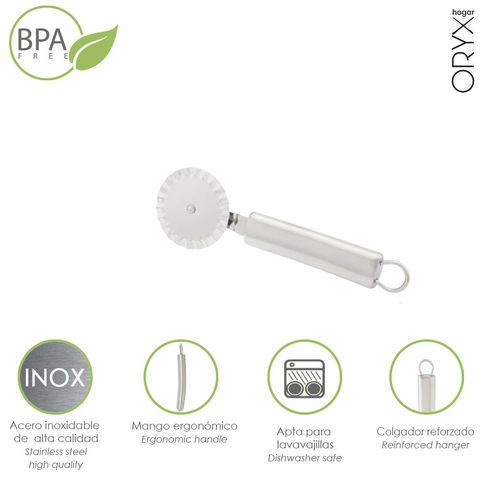 - Descubra toda la gama de utensilios de acero inoxidable:Cortador de queso, cortador de pizza, abrelatas, rallador, abre botellas, colador, rodillo corta pasta, todos ellos realizado en acero inoxidable.