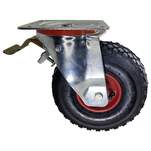 rUEDA CON SOPORTENDE ACEERO ESTAMPADO Y RODAMIENTO DE DOBLE HILERA DE BOLAS REFORZANDO EL ESFUERZO AXIAL. ARO NEUMATICO INPINCHABLE CON NUCLEO DE ACERO ESTAMPADO (ROJO GRIS) |